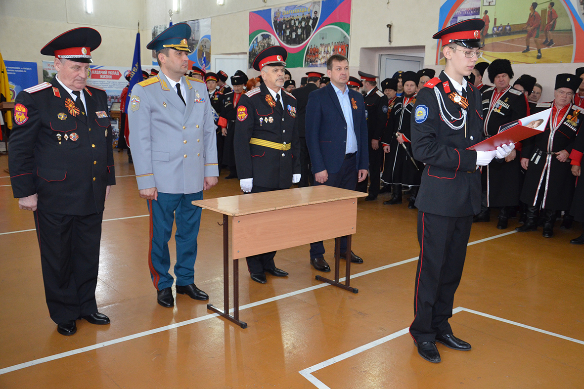 Шестеро новобранцев Новороссийского казачьего кадетского корпуса дали торжественное обещание перед строем о верности казачеству и были приняты в кадеты. Перед собравшимися выступил Черноморский вокальный ансамбль Центра казачьей культуры Новороссийского РКО и взвод почетного караула кадетского корпуса.